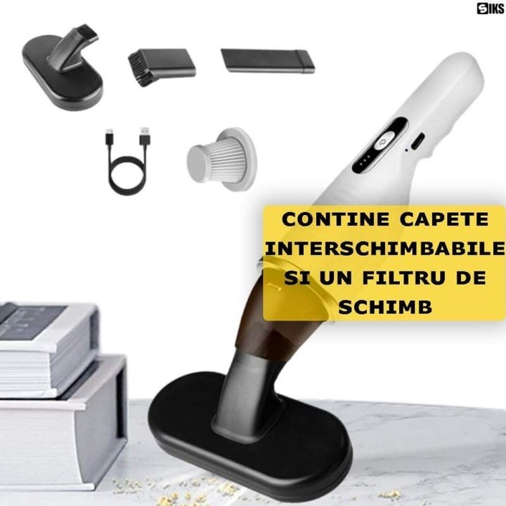 Aspirator Auto Reîncărcabil 80W, Acumulator 2000 mAh, Filtru HEPA Lavabil, Dimensiuni 41x9,5x19,5 cm, Design Portabil pentru Curățenie Rapidă și Eficientă, Alb/Negru