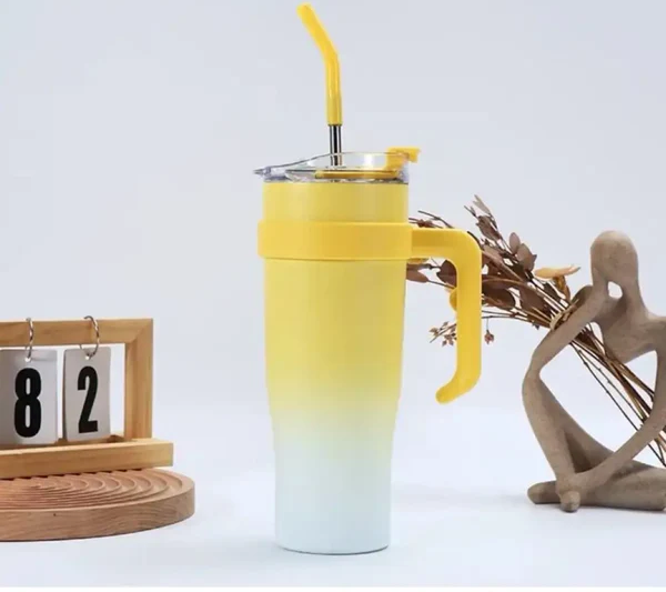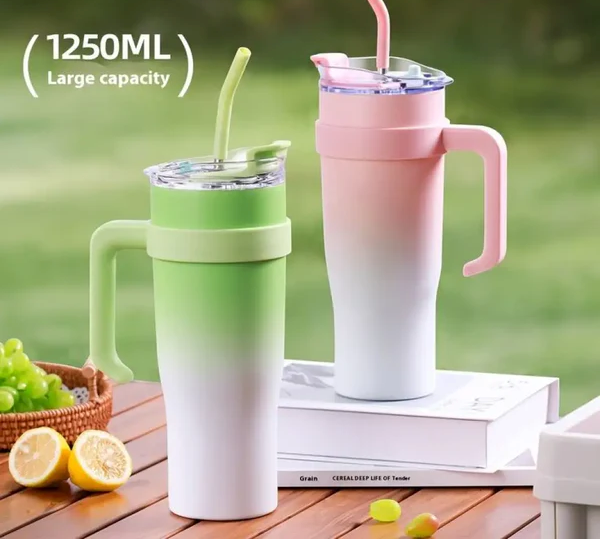Capacitatea mare și paiul inclus oferă confort și practicitate în orice moment al zilei.