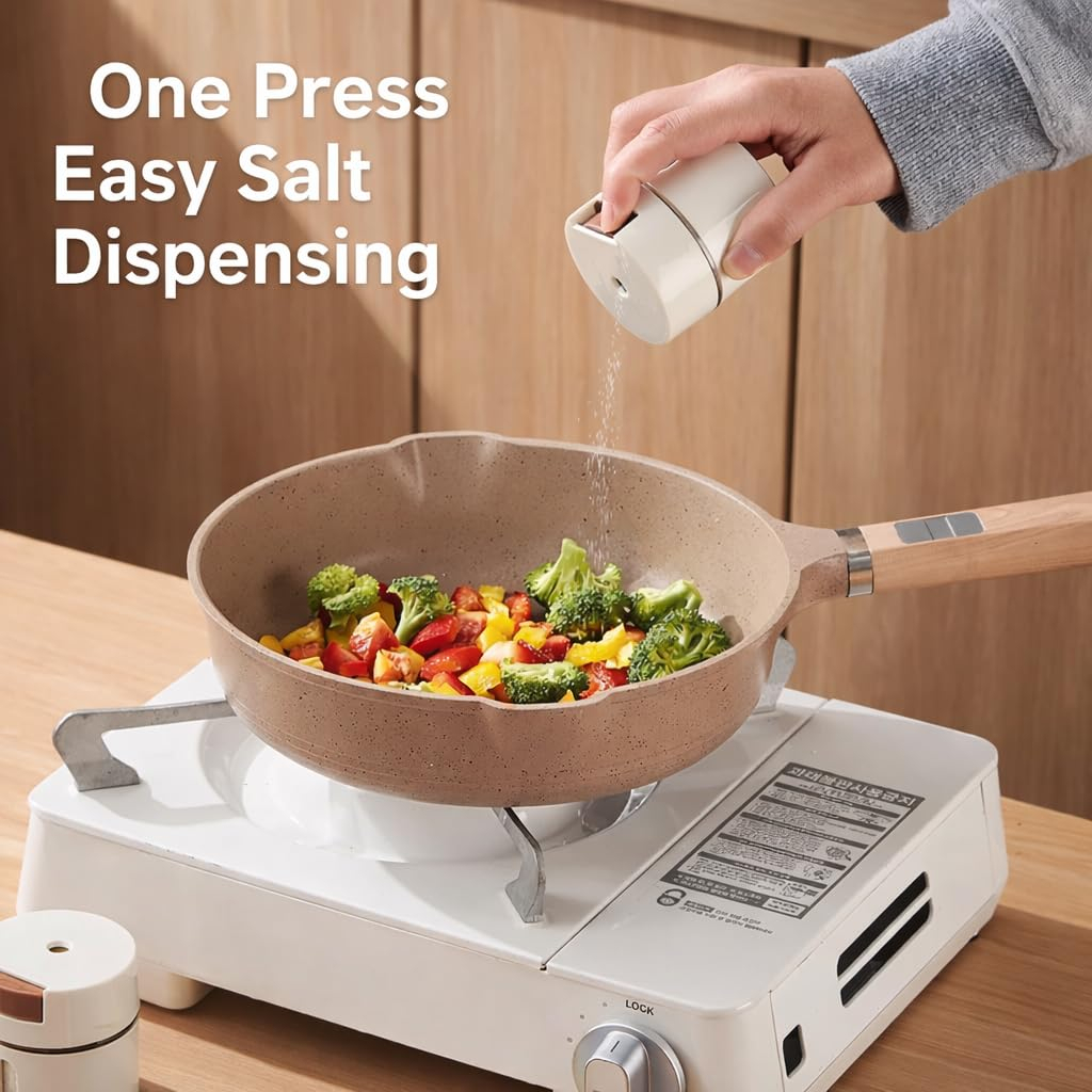 Recipientele sunt realizate din material ABS rezistent și pot fi montate pe perete pentru a elibera spațiul de pe blat. Sistemul magnetic permite fixarea sigură și accesul rapid la condimentele utilizate frecvent în timpul gătitului.