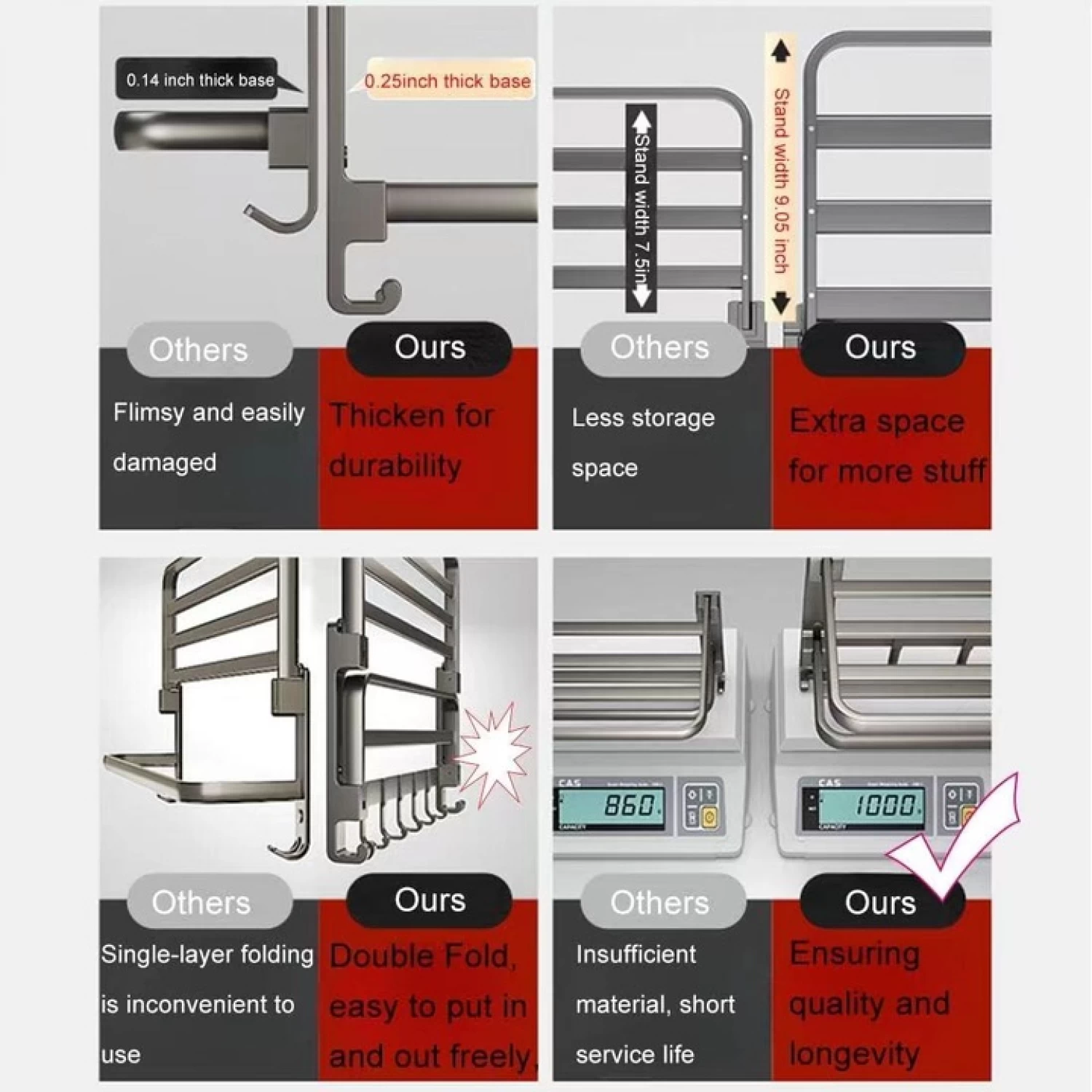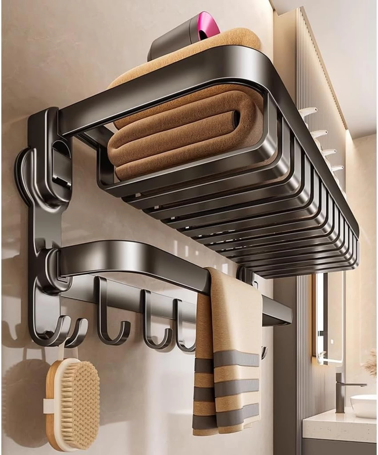 Organizeaza-ti baia cu stil si eficienta! Acest suport rabatabil pentru prosoape este solutia perfecta pentru a economisi spatiu si a pastra ordinea în locuinta ta, indiferent daca ai o baie mica, un apartament modern sau o zona de depozitare restrânsa.