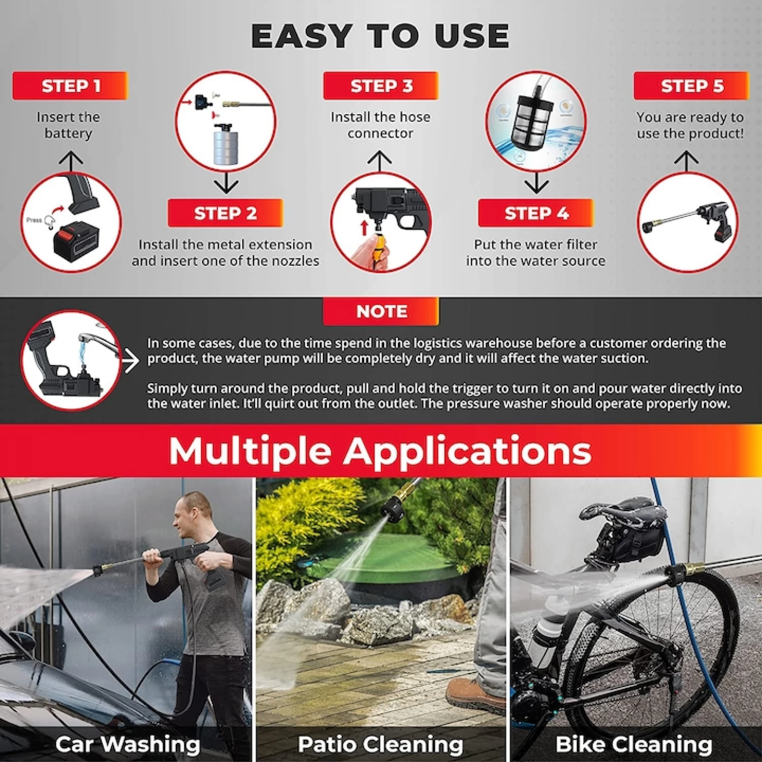 ✅ Versatilitate ridicata – perfect pentru curatarea masinii, gradinii, mobilierului de exterior, bicicletelor, scarilor si multe altele.